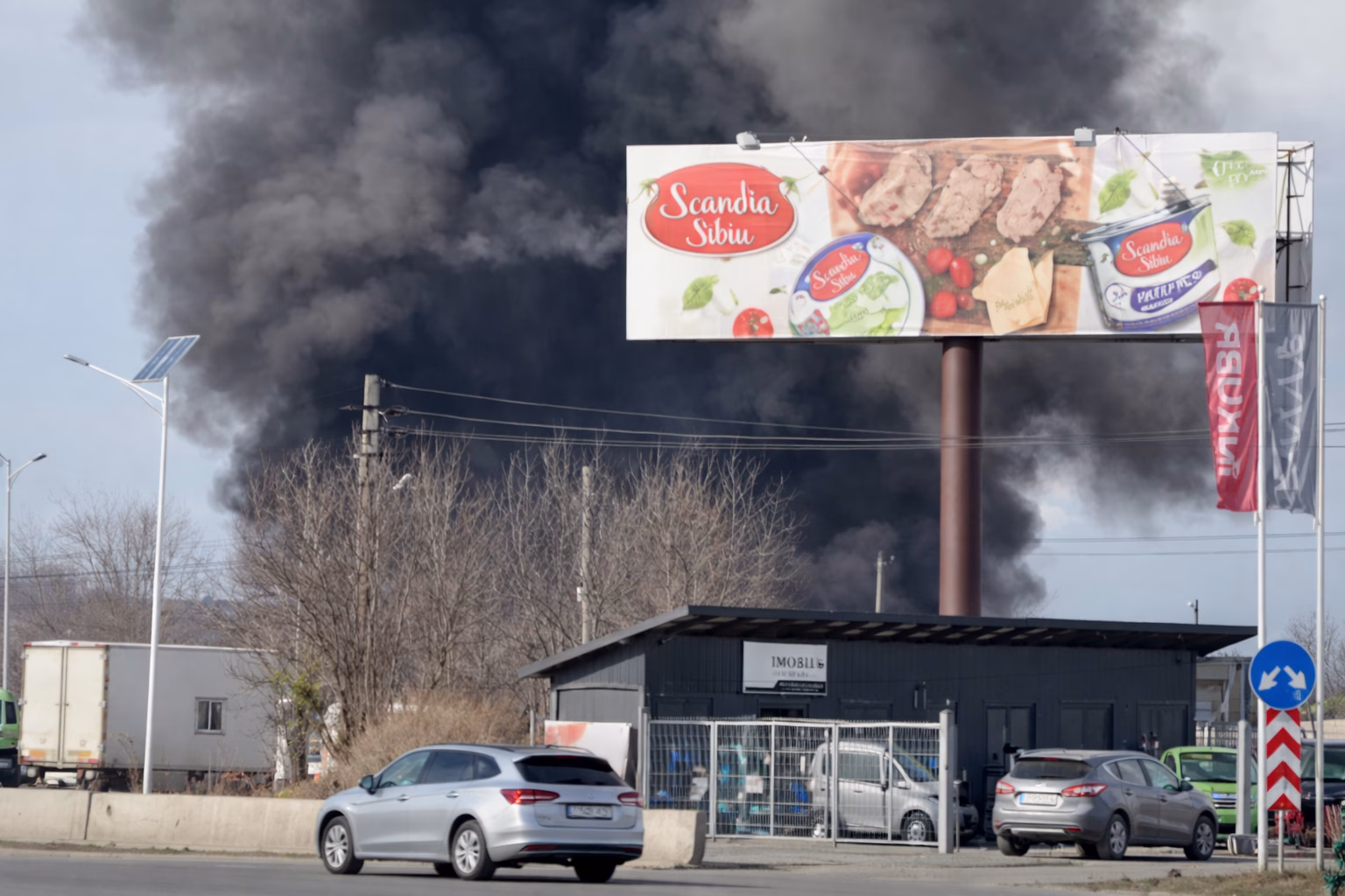 Incendiu de proporții la o vulcanizare din Sibiu, trafic oprit pe DN 1