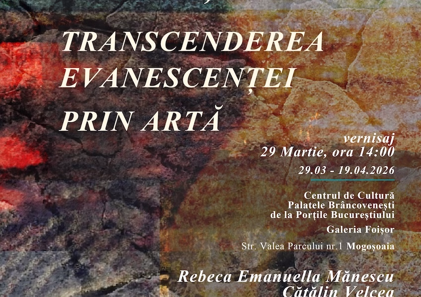 ce reunește lucrările artiștilor Rebeca Emanuella Mănescu și Cătălin Velcea, va avea vernisajul în data de 29 martie 2026, la ora 14:00, la Centrul de Cultură Palatele Brâncovenești de la Porțile Bucureștiului, în spațiul Galeriei Foișor. Cu această ocazie, publicul este invitat să participe la un recital de chitară clasică susținut de invitatul special, Prof. Dr. Tudor Niculescu-Mizil. Expoziția curatoriată de Andreea-Eliza Petrov, cu contribuția criticului de artă Ana Amelia Dincă, va putea fi vizitată până la 19 aprilie 2026, de marți până duminică, în intervalul orar 09:00 – 17:00.